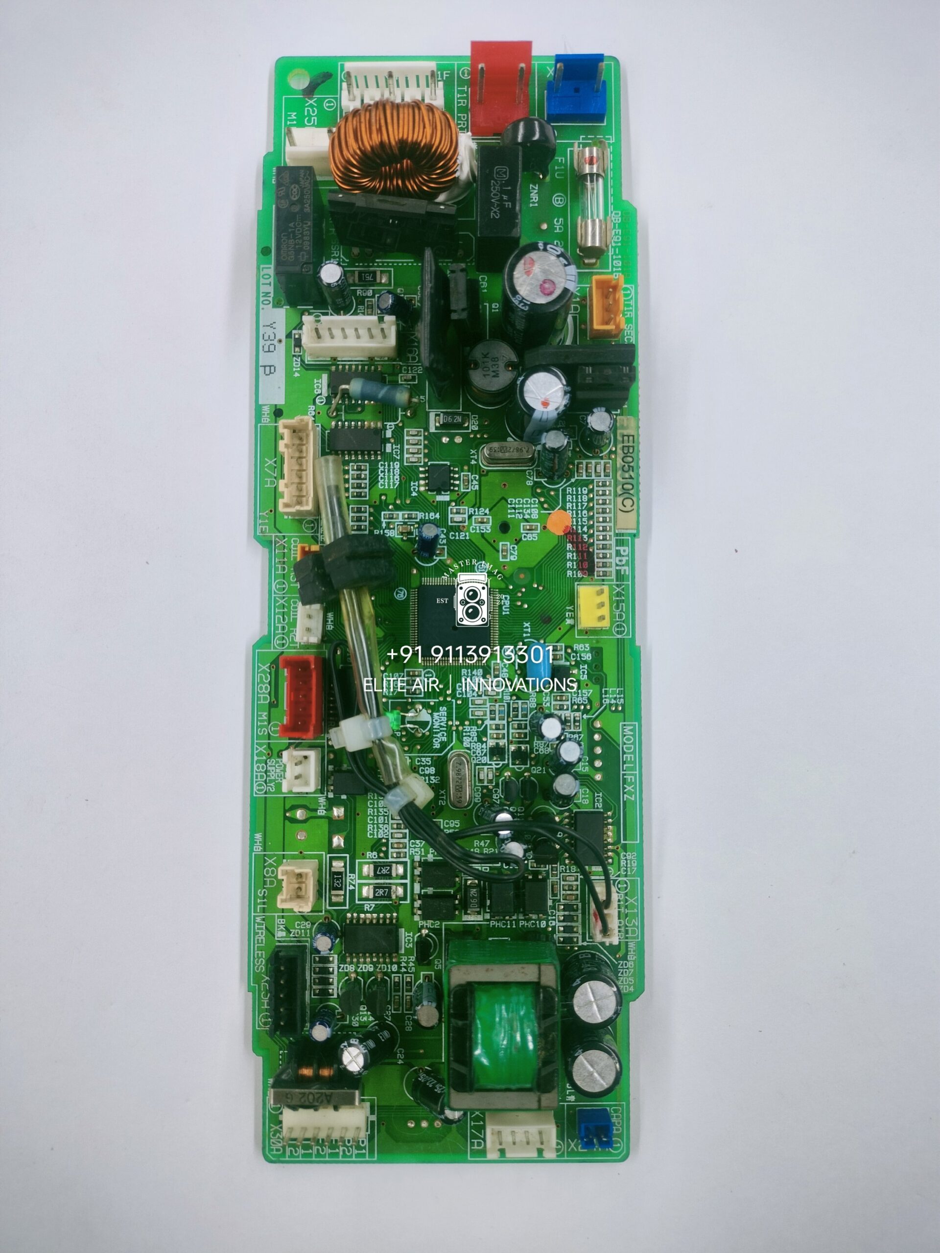 DB-E91-101A this is a Main Control PCB (Printed Circuit Board) typically found in high-end HVAC systems, specifically Inverter Air Conditioners (likely Daikin or a similar brand based on the “EB0510(B)” and “MODEL FXZHere is a detailed breakdown of the components and sections visible: